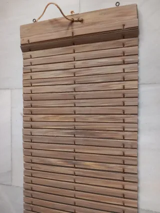 Persiana alicantina arrotolabile in PVC marrone chiaro venato. Dimensioni: 43 X 140. Facile installazione.