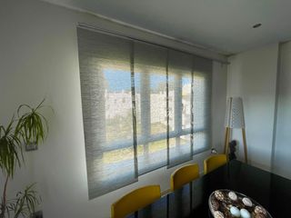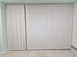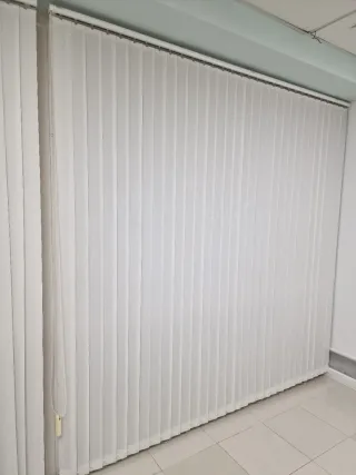 Cortinas lamas verticales opaca.listones 9cm.impermeable. con pesas y cadena.color gris L110 H240.apto para hogar,oficinas,puertas correderas,puertas de patio,separadores ambientes.istalacion: techo y en la pared.vendo por mudanza Opaque vertical blind curtains. 9 cm slats. Waterproof. With weights and bottom chain. Grey color. Width 110 cm, height 240 cm.Suitable for homes and offices. Ideal for sliding doors, patio doors, and room dividers. Installation options: ceiling-mounted or wall-mounted. Selling because of a move.