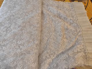 Telo tenda unico. Bianco con ricami floreali. Già completo di bordo con ganci per zinefra. Altezza 240 cm Larghezza 185 cm Ottime condizioni.