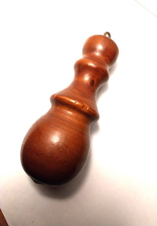 Accessorio per far scorrere il cordino delle tende con finitura in legno e dettagli metallici. - per tende.(tipo A) - Elemento decorativo in legno tornito. - Anello di aggancio in metallo.