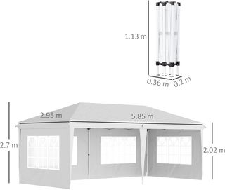 SISTEMA DI APERTURA/CHIUSURA POP-UP: Il gazebo da giardino pieghevole si apre e chiude velocemente grazie al pratico sistema automatico pop-up PRATICO DA USARE: Il nostro gazebo da giardino è facile da usare e da conservare. Con ampie dimensioni di 5.85L x 2.95P x 2.7A m e altezza regolabile a 3 livelli, questo tendone per feste è ideale per accogliere numerosi ospiti SACCA DI TRASPORTO INCLUSA: Grazie alla pratica sacca inclusa, puoi trasportare comodamente il nostro gazebo pieghevole ovunque ti serve e riporlo in modo ordinato VERSATILE: Questo tendone da giardino è perfetto per diverse occasioni, per organizzare feste nei tuoi sp