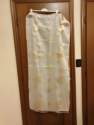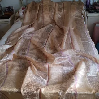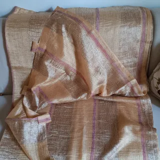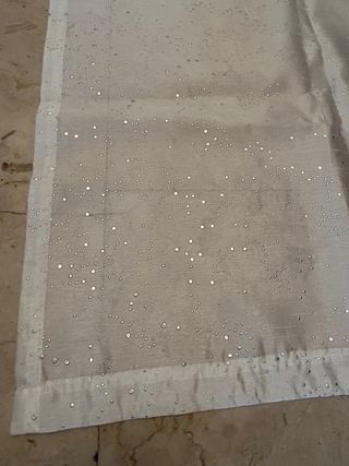 Set composto da: - 2 tende velate con brillantini color oro misura 2.70 metri - 3 copri cuscini beige. + omaggio aggiunto nell' ordine 🎁💌