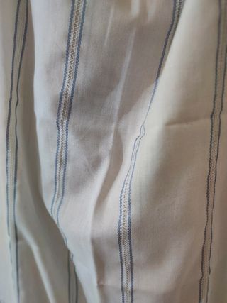 Coppia di Tende in cotone Coppia di 2 tende in cotone bianche con righe azzurre. Dimensioni: Larghezza 55 cm Lunghezza 1.50 m