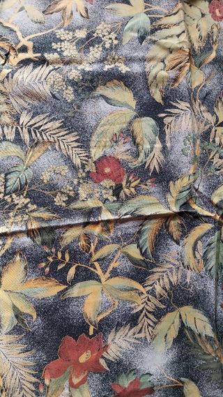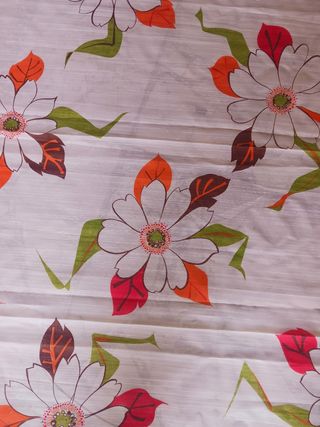 Bellissimo tessuto vintage con un allegro motivo floreale. - Motivo a fiori stilizzati. - Colori vivaci arancio e rosso. - Ideale per progetti creativi. Le misure sono altezza 250cm. Larghezza 160 cm