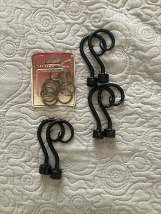 Set per tende: 8 anelli e 6 finalini per bastoni