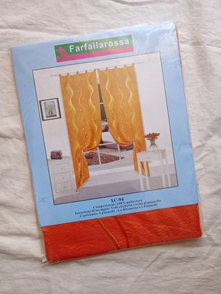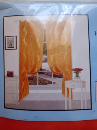 Coppia tende organza arancione, fantasia a onda, nuove e sigillate. Mai aperte, vendo per inutilizzo ( ho cambiato colore al mio arredamento). Misure cm 70 x 150