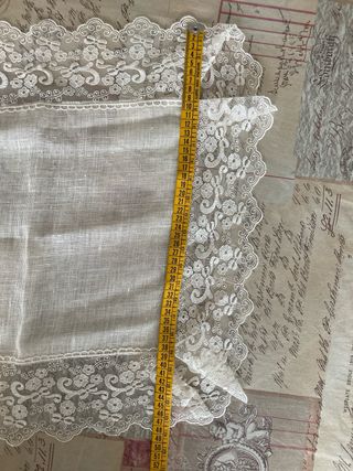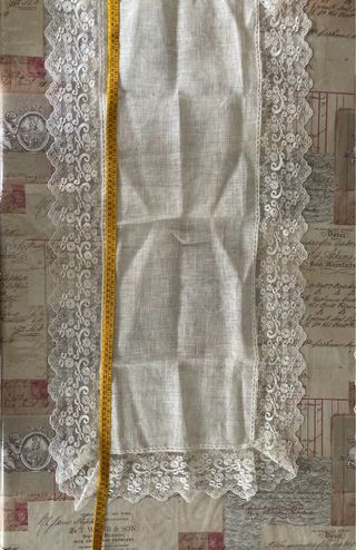 ottima qualita ,tenda di lino originale e centrini di lino e macrame .misura tenda 3 metri di altezza per 2 di larghezza ,per due teli