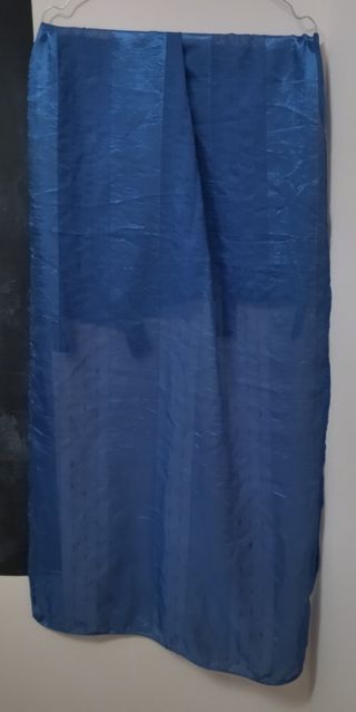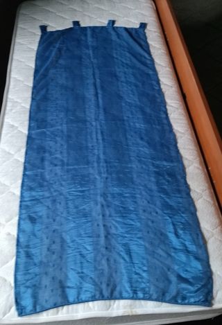 Tris di tende blu. Lunghezza 150 cm, larghezza 57 cm. Vendibili anche separatamente a 4€ cad