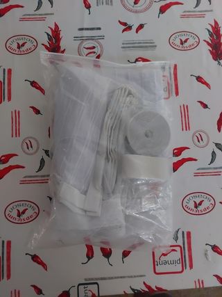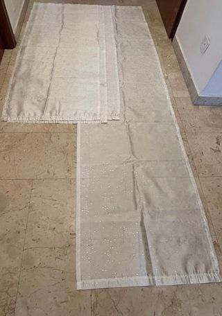 ciascun telo misura 150x60 cm. Velate. 100% poliestere. Pari al nuovo