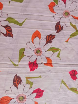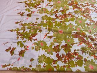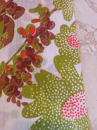 Bellissimo tessuto vintage con un allegro motivo floreale. - Design ispirato agli anni '70. - Motivo a fiori stilizzati. - Fantasia colorata e vivace. Mai usata misure altezza 290 cm, larghezza 125 cm
