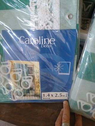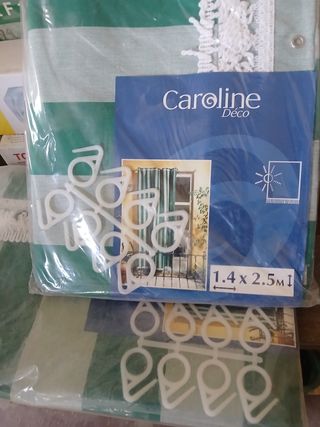 Bellissime tende da sole a righe verdi e bianche del marchio Caroline Deco. Sono nuove, mai usate, ancora confezionate. Misurano 1,4 x 2,5 metri. Incluse 12 clips di plastica bianche per il fissaggio. Perfette per proteggere dal sole il vostro balcone o finestra. - Misure: 1,4 x 2,5 metri - Include 12 clips di plastica