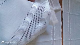 2 Tende lunghe bianche decorate. Misure: 55x230 cm. Usate poche volte, perfette come nuove.