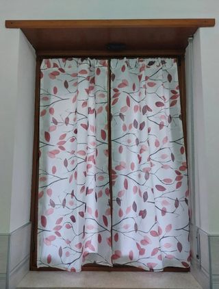 Tenda rosa confezionata, pronta per essere appesa.altezza 273, larghezza 93, eventualmente allungabile di altri 50 cm - Tessuto leggero e arioso. - Rifiniture curate.
