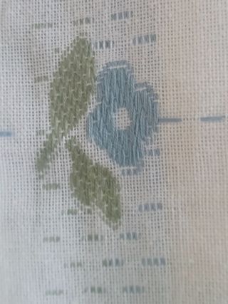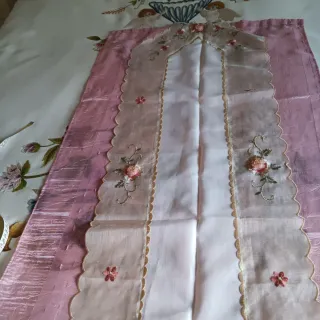 Telo ricamato ii lino con fantasia floreale