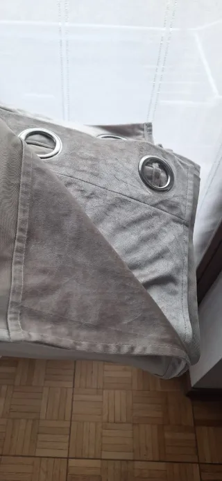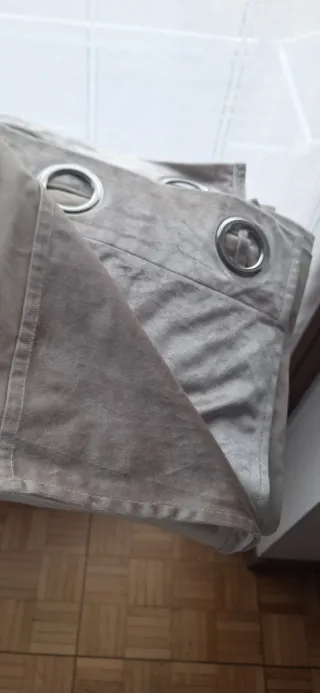 Tenda elegante con finitura in velluto, perfetta per aggiungere un tocco di classe alla tua casa. - Colore beige e grigio. - Tessuto morbido al tatto. - Dettagli con occhielli metallici.