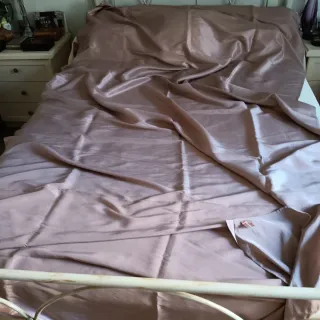 Elegante coppia di tende in tessuto satinato, colore rosa antico.da adattare alle proprie esigenze. - Misure: 280 cm di altezza x 150 cm di larghezza ciascuna. - Tessuto liscio e luminoso.