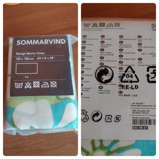 Telo per tende o copriletto Ikea, modello SOMMARVIND, design Maria Vinka. Le sue dimensioni sono 110 x 150 cm. - Design Maria Vinka. - Misure: 110 x 150 cm. - Composizione: 100% viscosa.