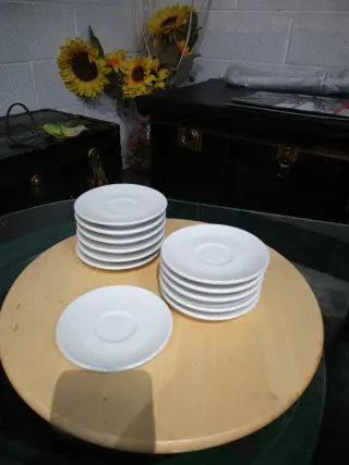 Set di piattini da caffè in porcellana bianca. Sono impilabili e perfetti per servire il caffè. - Materiale: porcellana - Colore: bianco - n. 12 pezzi