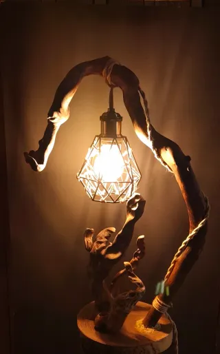 Lampada da tavolo artigianale in legno e metallo