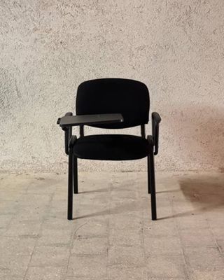 10 sedie in tessuto nero con scrittoio ribaltabile. Seduta e schienale imbottiti. Ottime per ufficio e sale corsi/conferenze. - Seduta e schienale imbottiti. - Braccioli integrati. - Tavoletta per appunti ribaltabile.