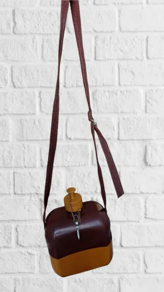 Borraccia vintage originale degli anni '70. - Design unico bicolore. - Pratica tracolla regolabile.
