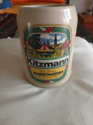 Boccale vintage da collezione Kitzmann in ceramica smaltata, capienza mezzo litro, perfetto per gli amanti della birra e delle atmosfere bavaresi. Disponibile solo con spedizione, senza ritiro a mano. #oktoberfest #birra #boccale #vintage #ceramica - Design vintage con scena di festa. - Scritta Kitzmann in evidenza. - Echtes Erlanger Bergkirchweihbier.