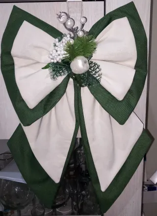 Bellissimo fiocco decorativo, perfetto per aggiungere un tocco festivo alla tua casa durante le feste. - Realizzato in tessuto resistente. - Design elegante con bordi a contrasto.