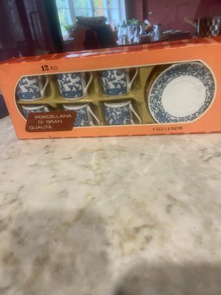 Elegante set di 12 tazzine da caffè in porcellana con un bellissimo motivo decorativo blu e bianco. Perfette per gustare il tuo caffè. - 12tazzine da caffè - Motivo decorativo blu e bianco - Realizzate in porcellana di alta qualità