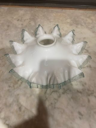 Bellissimo paralume in vetro opalino con bordo smerlato. Aggiunge un tocco di eleganza a qualsiasi lampada. - Design a forma di fiore con bordi ondulati. - Finitura smerlata con un sottile bordo colorato.