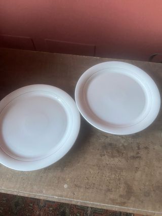 Elegante set di due piatti da portata. - Design classico con finiture a rilievo. - Ideali per servire antipasti o piatti principali.