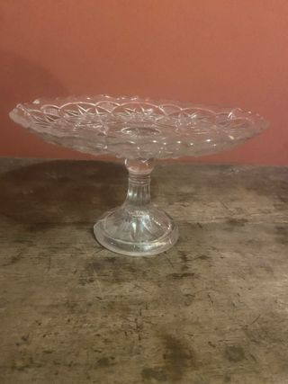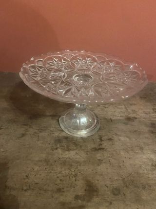Elegante alzatina vintage, perfetta per presentare dolci o stuzzichini. - Design decorato con motivi a stella. - Bordo ondulato e rifinito. - Base stabile e lavorata.