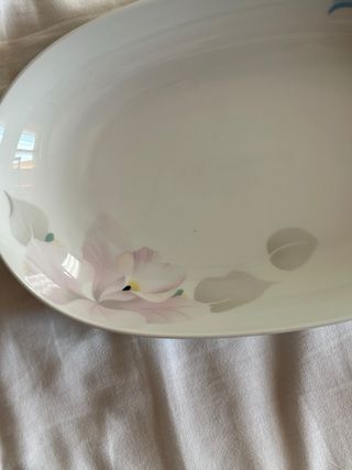 Elegante piatto da portata in porcellana, perfetto per servire le tue pietanze con stile. Il suo design raffinato lo rende un'aggiunta preziosa alla tua tavola. - Bordo decorato con motivo floreale. - Finitura lucida.