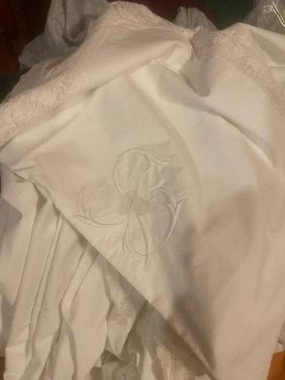 Elegante lenzuolo matrimoniale superiore, finemente ricamato a mano con motivi floreali. - Ricami floreali dettagliati. - Bordi rifiniti con pizzo. - Tessuto di alta qualità.