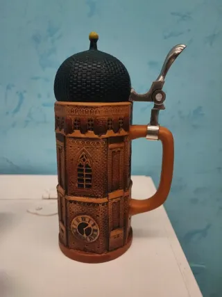 Piccola brocca da collezione in ceramica, ideale per gli amanti degli oggetti unici. - Design a forma di torre con cupola. - Dettagli architettonici finemente lavorati. - Orologio decorativo sulla base.