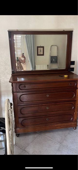 Elegante comò con specchio, un mobile classico che aggiunge un tocco di stile alla tua casa. - Struttura in legno massello. - Ampio specchio integrato. - Cassetti spaziosi per riporre i tuoi oggetti.