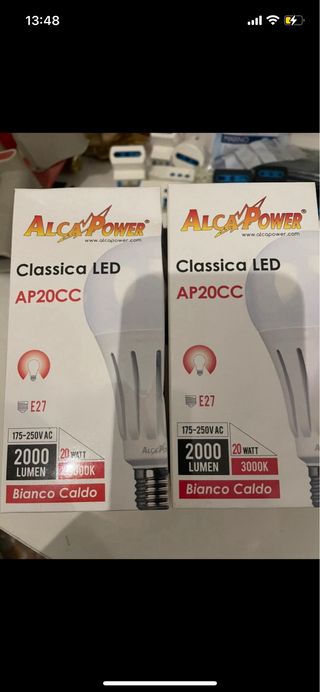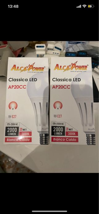 Set di due lampadine a LED marca ALCA POWER. - Modello: Classica LED AP20CC - Potenza: 20 Watt - Flusso luminoso: 2000 Lumen - Temperatura colore: 3000K (Bianco Caldo) - Attacco: E27 - Tensione: 175-250V AC
