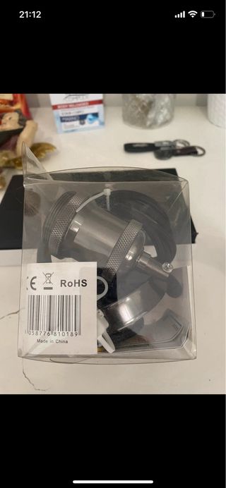 Portalampada con cavo, pronto per essere installato. - Finitura metallica grigia. - Cavo nero incluso.