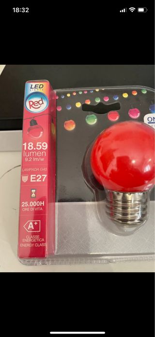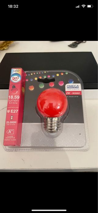 Lampadina LED di ricambio, colore rosso. - Attacco E27. - Potenza 2W. - Durata 25.000 ore. - Classe energetica A+.