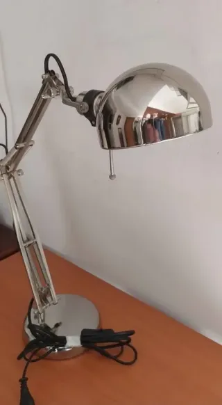 Elegante lampada da scrivania con finitura argentata. - Braccio articolato per un posizionamento flessibile. - Base stabile e robusta. - Design moderno e funzionale. - Per dare un tocco di eleganza al vostro arredamento.