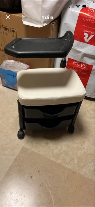 Sgabello pratico e versatile, perfetto per diverse esigenze. - Vassoio superiore rimovibile. - Due cassetti portaoggetti integrati. - Base con rotelle per facilitare lo spostamento.