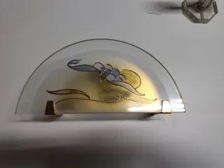 Elegante applique da parete con una finitura in metallo dorato e un bellissimo decoro floreale in vetro. - Design semicircolare. - Dettagli floreali dipinti a mano. - Montaggio a parete.