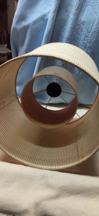 Lampada sospensione vintage rattan e tessuto