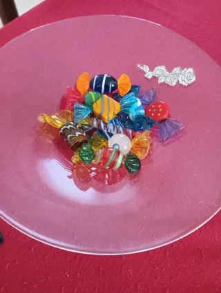 Elegante piatto decorativo in vetro trasparente, impreziosito da una delicata applicazione a forma di ramo di rose in argento. - Decorazione floreale in argento. - Materiale: Vetro e argento. - Etichetta Creazioni Argento presente. -Caramelle in Murano (11)