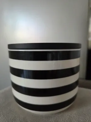 Zuccheriera in ceramica con un grazioso decoro con uva. Alta 8 cm, con il coperchio alta 15 cm Larga 7,5 cm, circonferenza 30 cm. - Design rotondo e compatto. - Coperchio abbinato con pomello. - Decorazione dipinta a mano.