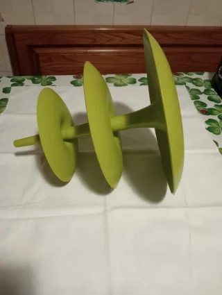 Elegante alzatina a tre piani, perfetta per servire stuzzichini o dolci. Alta 38,5 cm. (1) Larga 33 cm. (2) Larga 26,5 cm. (3 ) Larga 20 ,5 cm. - Design a tre livelli. - Colore verde vivace.