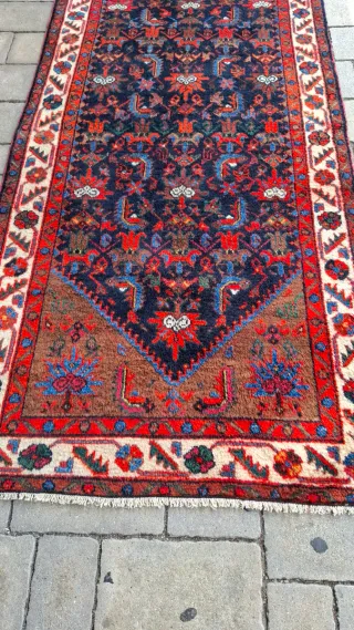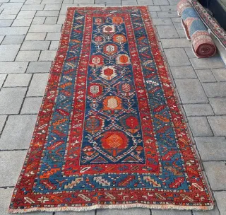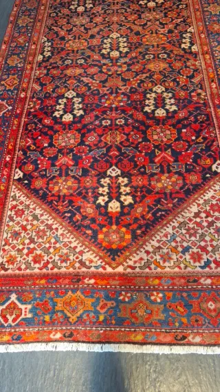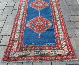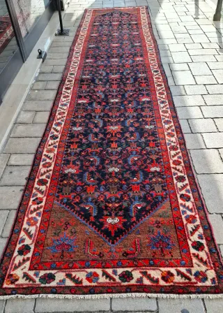Tappeto persiano antico Runner Blu e Rosso in Lan