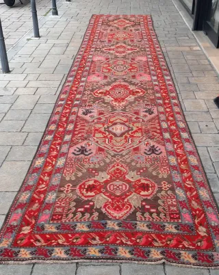 Tappeto karabak antico Runner Lana Marrone Rosso