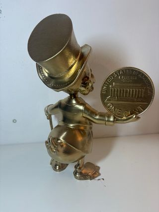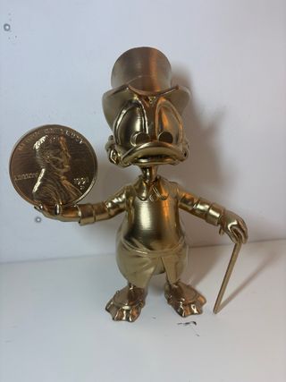 Statuetta raffigurante zio Paperone con in mano il suo primo centesimo di dollaro, quello con cui poi fece tutta la sua fortuna. Statua alta 32 cm realizzato in resina e sopra verniciata color oro lucido. Ottimo pezzo da arredamento o da collezione per gli amanti del mondo Disney. Inoltre, sotto la Scarpa l’oggetto è firmato Baraxprint
