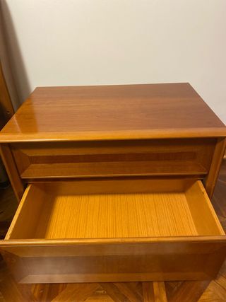 Comodino in legno color ciliegio con due cassetti. Un mobile pratico ed elegante per la camera da letto. Ne ho 2. Prezzo trattabile - Finitura liscia e lucida. - Design classico con linee pulite. - Maniglie integrate nei cassetti.
