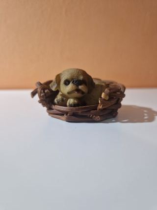 Vendo deliziosa statuetta raffigurante un cucciolo "meticcio" accovacciato,completa di cestino coordinato.L'oggetto è realizzato con grande cura per i dettagli, riproducendo fedelmente la texture del pelo e le tipiche espressioni di un cucciolo.Ottima idea regalo per gli animanti degli animali.Misure con il cestino 6x3,5x6 cm. #statuina #cane #cucciolo